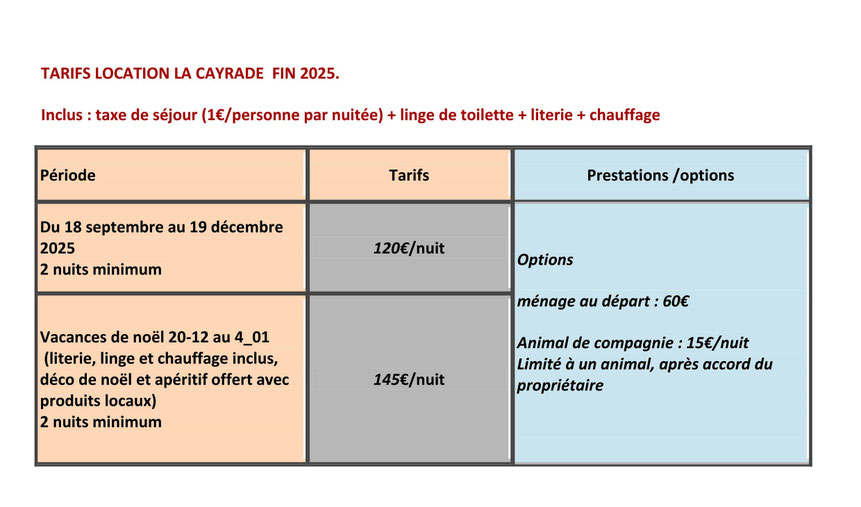 semaine: arrivée le samedi après 16H, départ le samedi avant 10H30